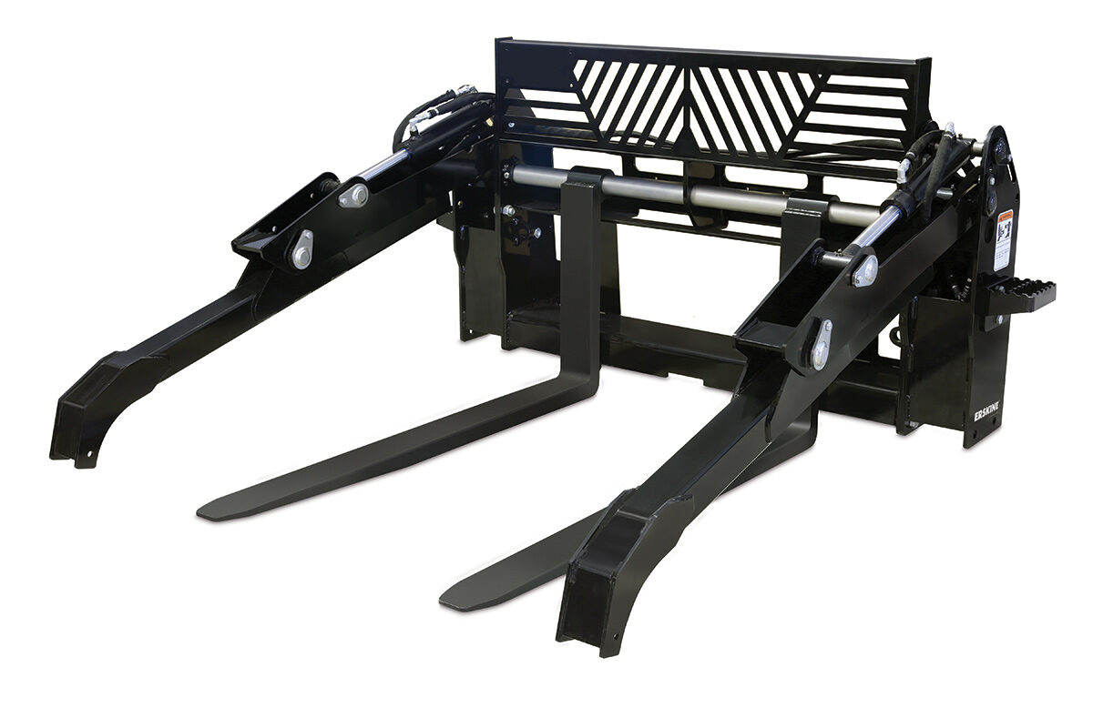 The Pipe Grapple Forks are designed to safely and efficiently transport pipe while maintaining the flexibility of a standard pallet fork. The clamp arms lift vertically out of the way, allowing quick conversion between pipe handling and general material handling.