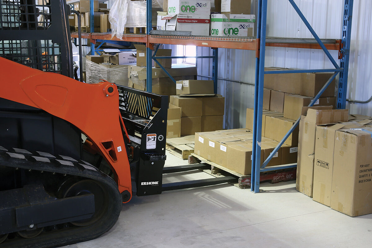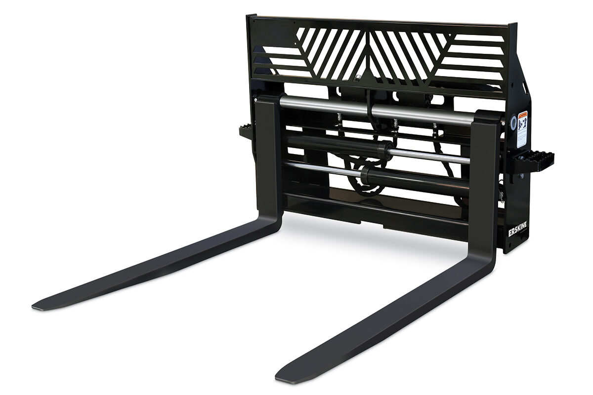 Forks move in and out simultaneously, allowing quick, even width adjustments from the operator’s seat.