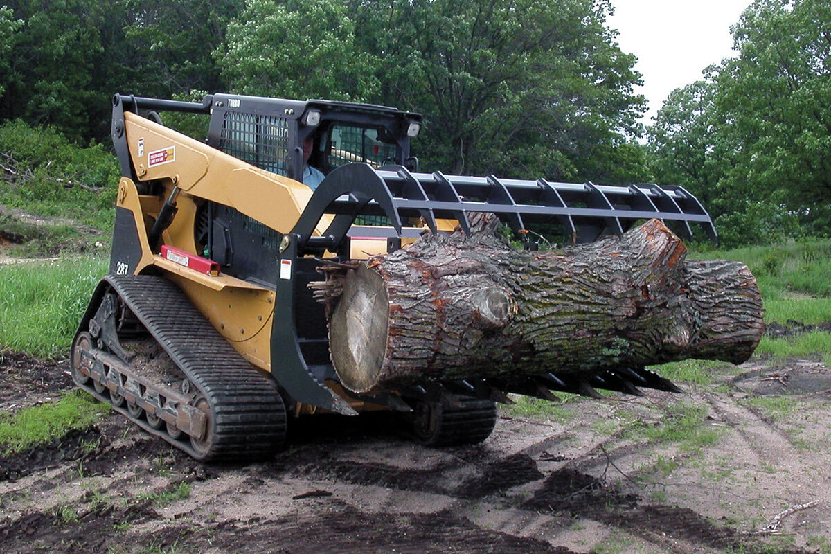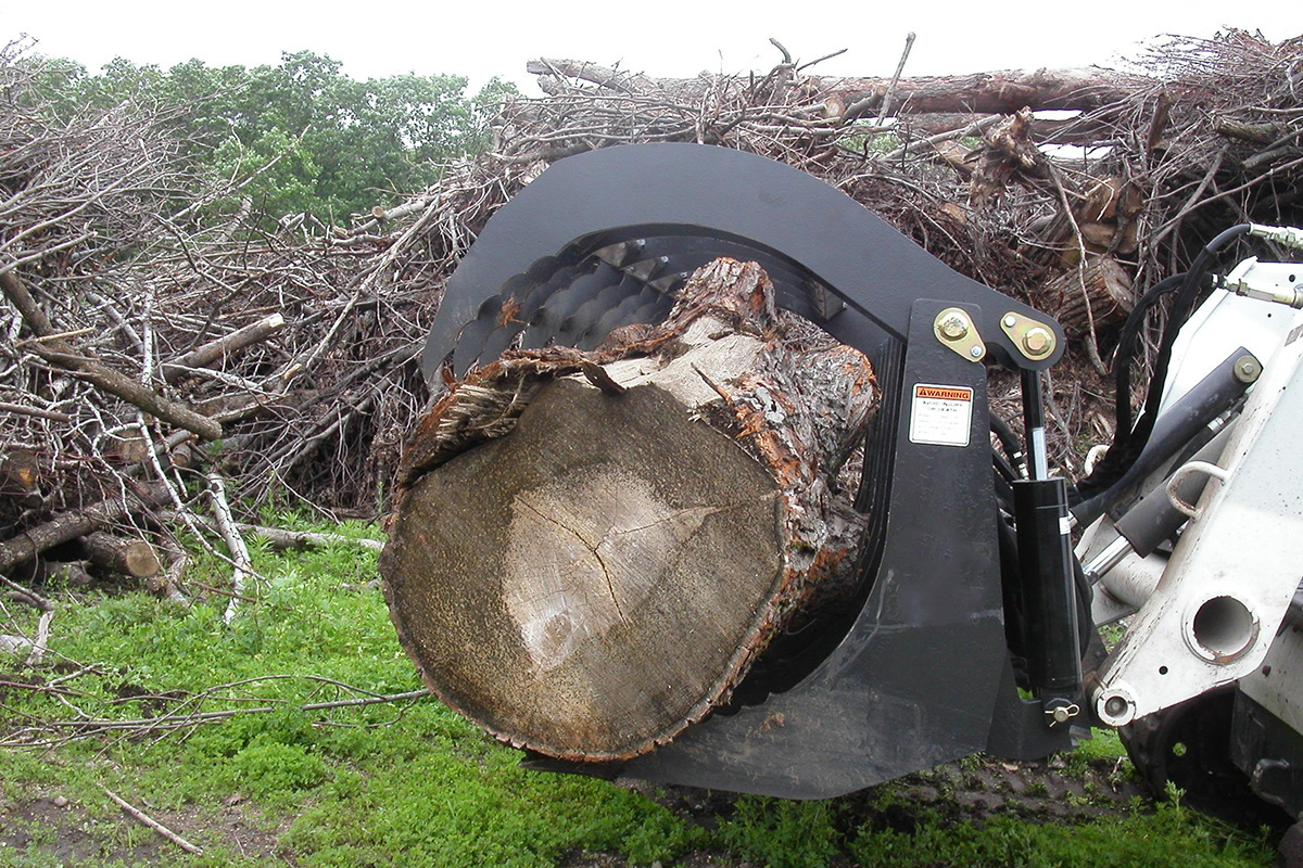 Two 3,000 lb hydraulic cylinders deliver strong, consistent clamping force to securely handle large logs, rocks, and debris.