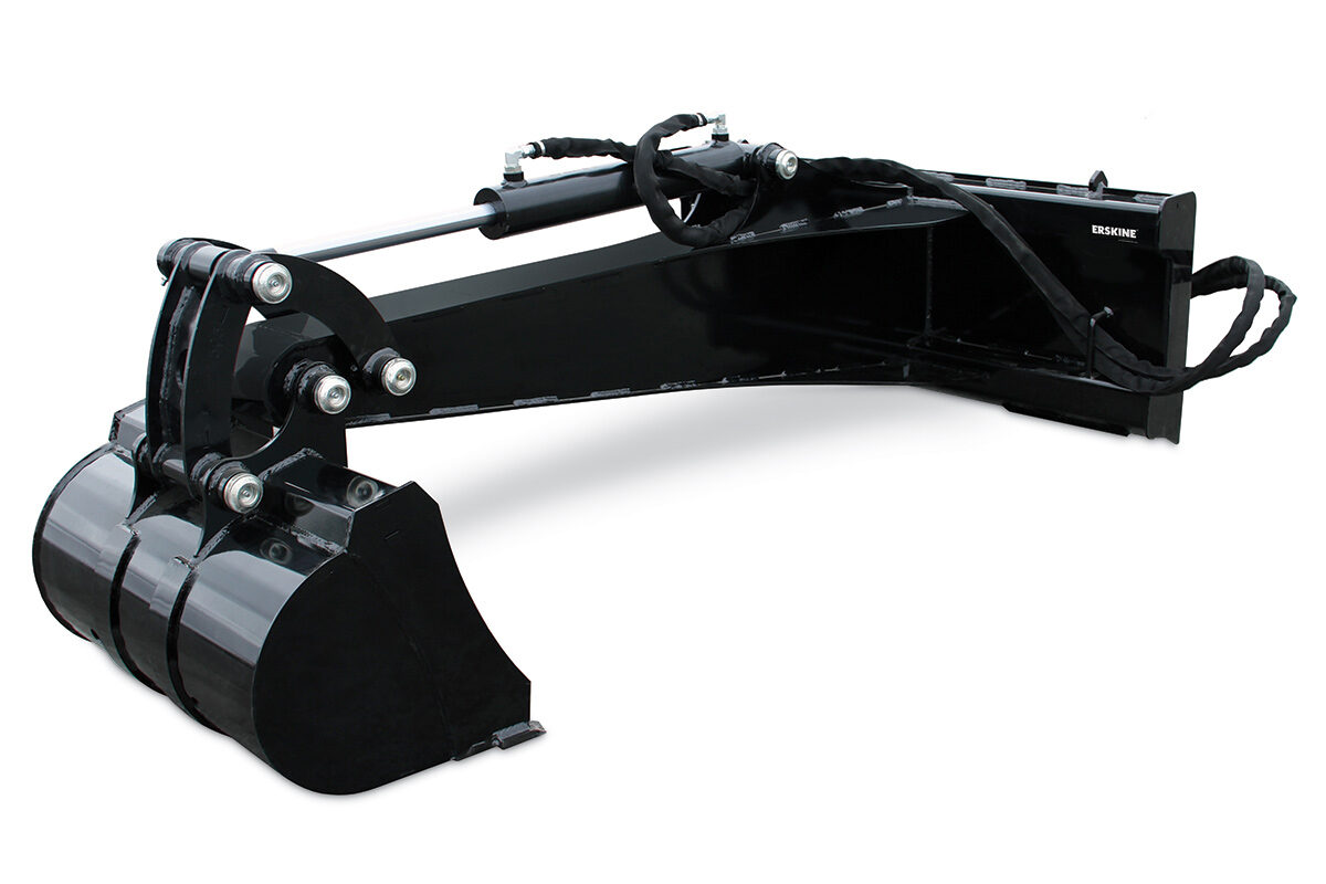 The curved-boom Backhoe attachment delivers rugged digging performance with the control and precision needed for landscaping, trenching, and concrete footing work. Designed to fit your machine and your property, it offers responsive controls and strong swing power while remaining easy to operate and maintain. With a wide range of bucket options and transport-friendly features, this backhoe is built to handle demanding jobs without unnecessary complexity.
