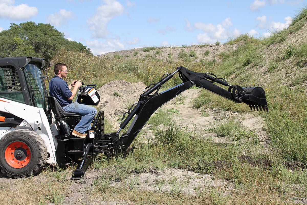 The curved-boom Backhoe attachment delivers rugged digging performance with the control and precision needed for landscaping, trenching, and concrete footing work. Designed to fit your machine and your property, it offers responsive controls and strong swing power while remaining easy to operate and maintain. With a wide range of bucket options and transport-friendly features, this backhoe is built to handle demanding jobs without unnecessary complexity.