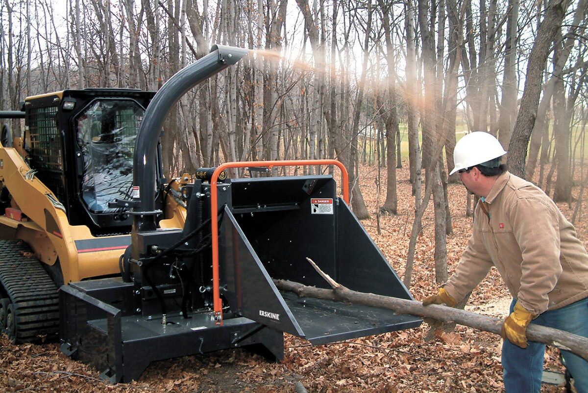 Turn your skid steer into a mobile work station with this skid steer brush chipper. Ideal for commercial and residential jobs, orchards, golf courses, and remote locations, it efficiently turns piles of branches into chips without damaging surrounding turf or landscapes.